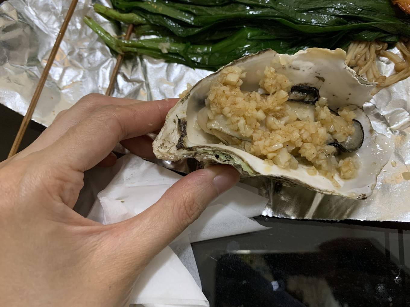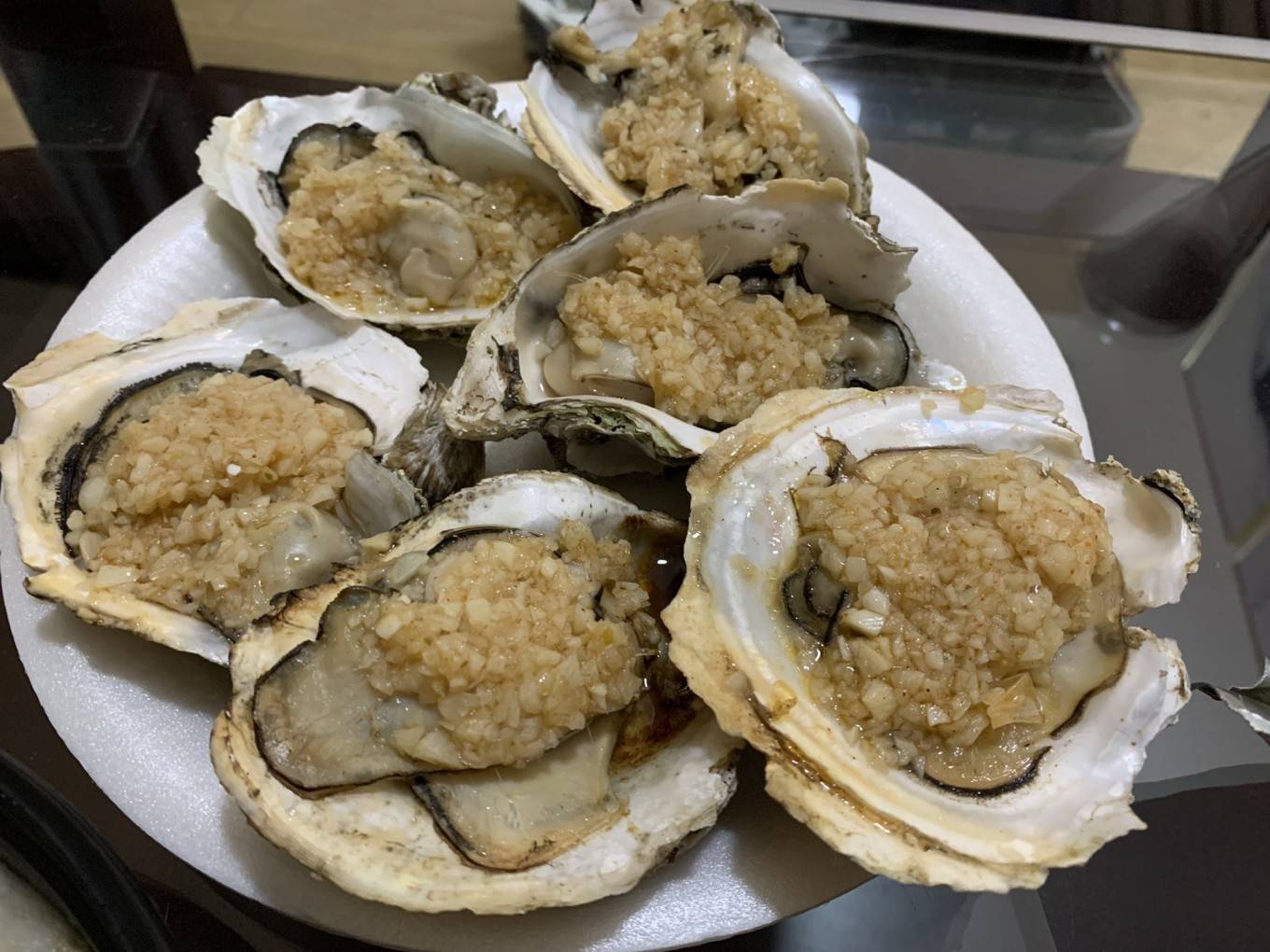 晚上嘴馋叫了外卖,9块9的生蚝,还很大只呢,快乐!
