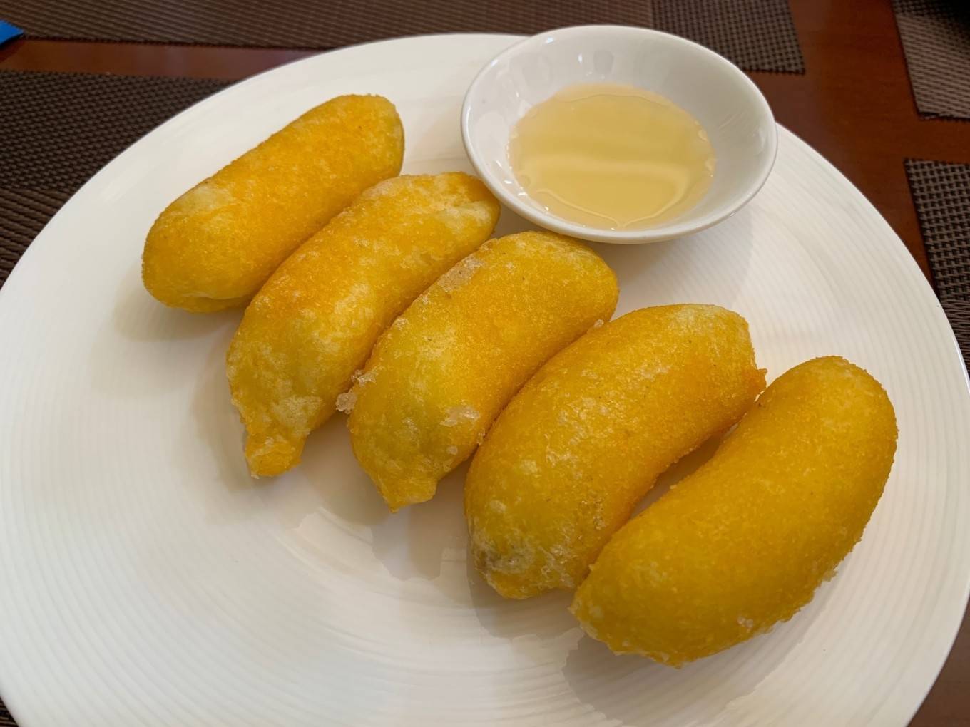 炸香蕉有香蕉的味道,可以蘸蜜糖吃。感觉应该是超市可以买的半成品。
