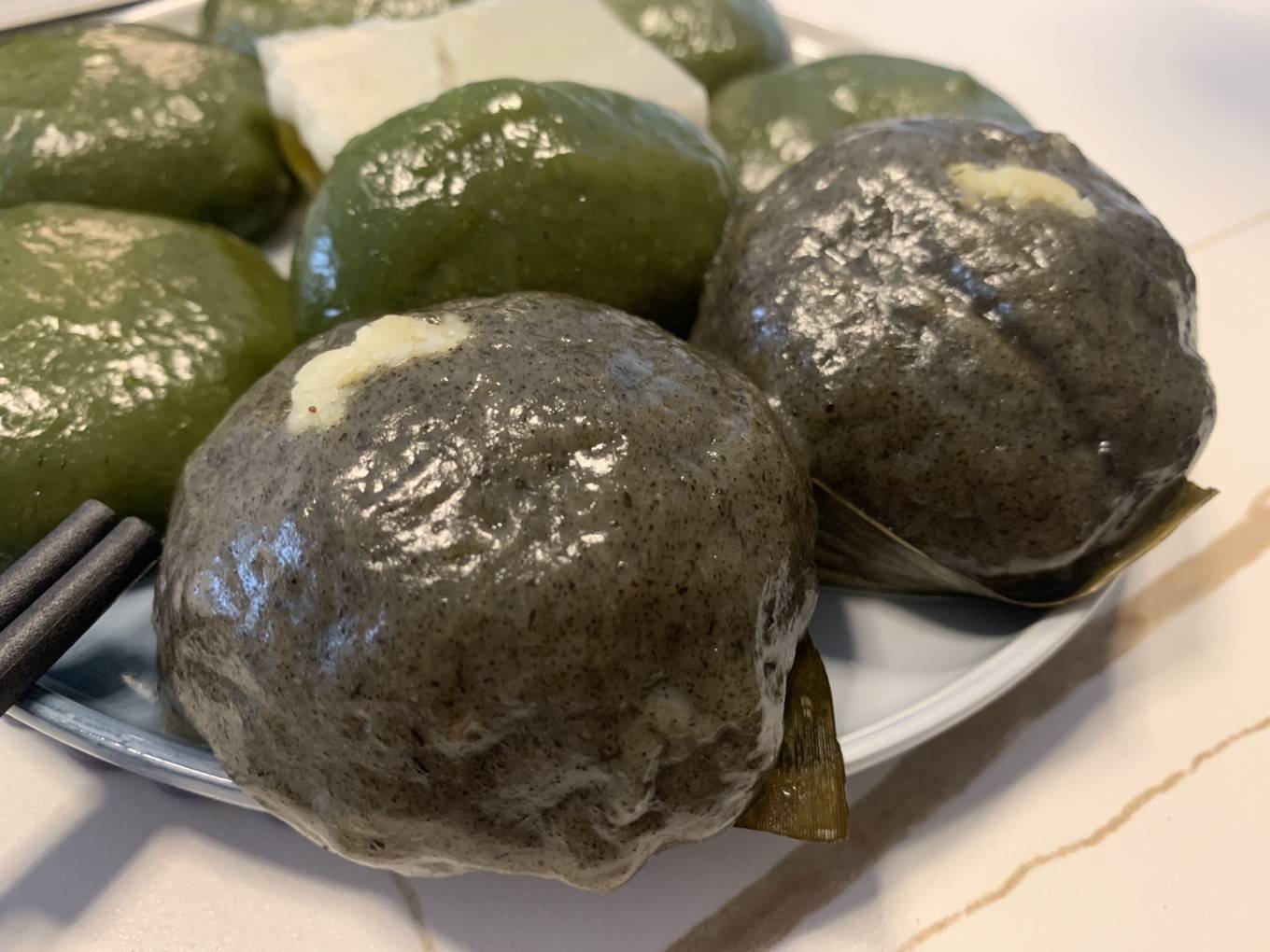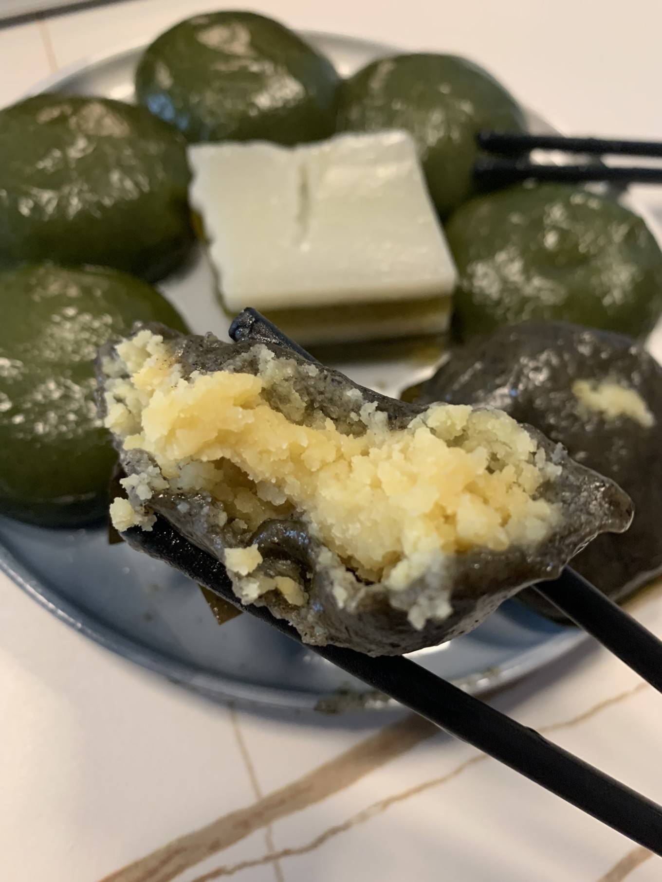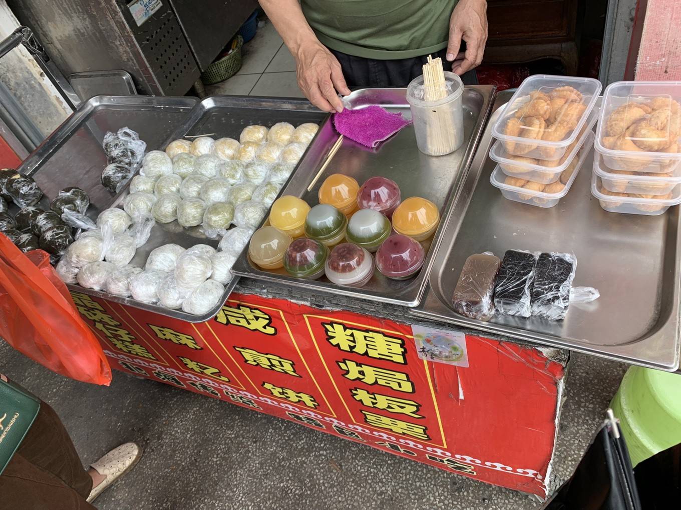 吃完饭赶紧去买点小吃打包走,准备离开返程了。都是糯叽叽的糕点,买了个绿豆馅的艾糍,还有斑斓糕。