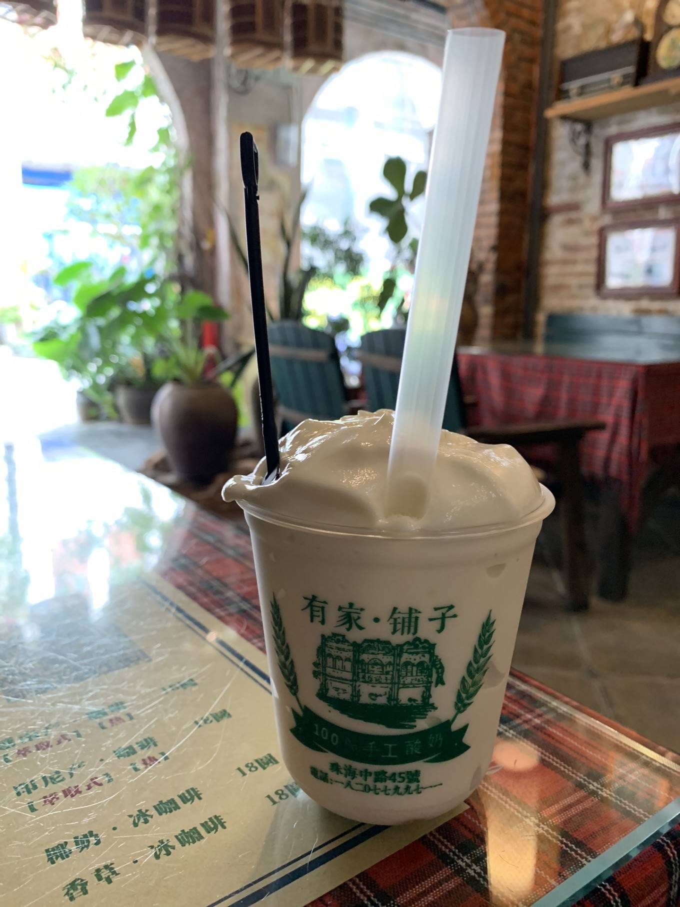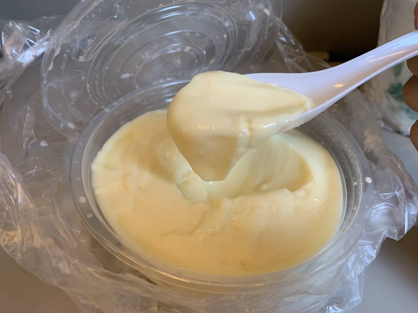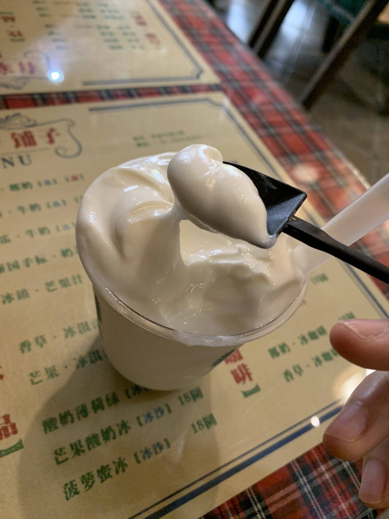 刚上来就感叹好大一杯,酸奶质地是比较绵实又轻盈,有点像忌廉的口感,不是偏硬偏厚实那种酸奶。
