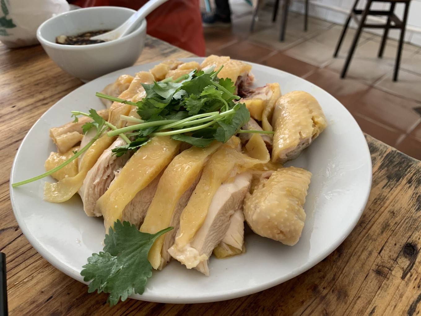 鸡像白切鸡,鸡皮爽口,酱料有沙姜和蒜,跟鸡比较搭。不过在无鸡不成宴的 广东 ,鸡是比较日常的菜,我也没有特别喜欢吃鸡,就不觉得很惊艳。