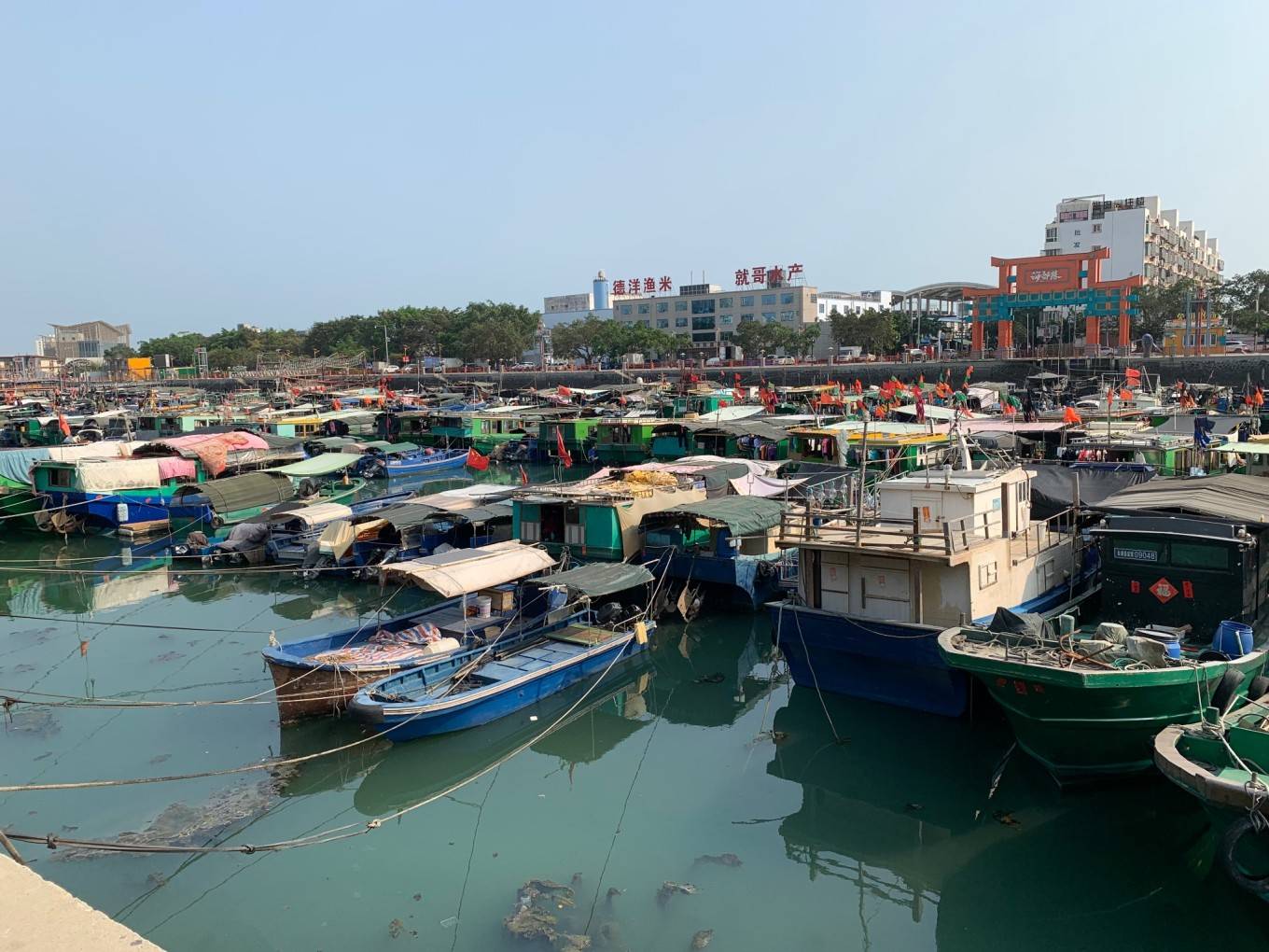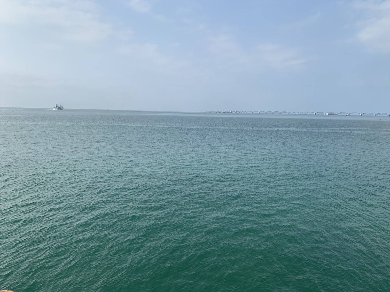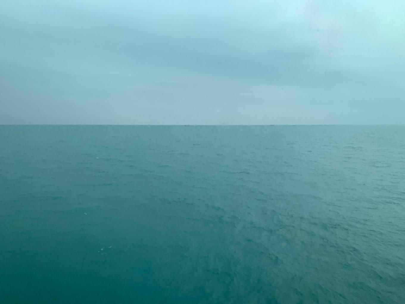 终于下船了,蓝绿色的大海