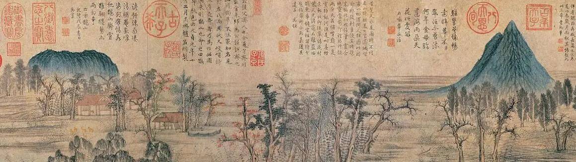 他落款写到“余通守齐州,罢官归来,为公谨说齐之山川,独华不注最知名”。老赵是江南人,他在济南做过官。他回江南老家就跟一个朋友说,哎呦,济南的景色好,其中华山最出名。为什么出名呢?有个叫小韩的说了半天了。朋友说,你说的我都知道啊,我就是济南人,我家就住在华山脚下。说完他哭了,这个老济南说,我年纪大了,回不了家了,真想回去再看看,呜呜呜。赵孟頫说,没关系,我给你画出来,于是他就画了这幅《鹊华烟雨图》,来缓解这位老济南的思乡之情。