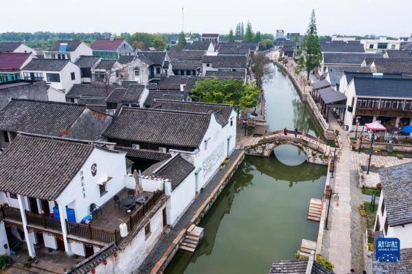 4月11日拍摄的织里镇义皋村古村落景区(无人机照片)。
