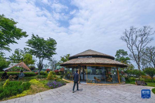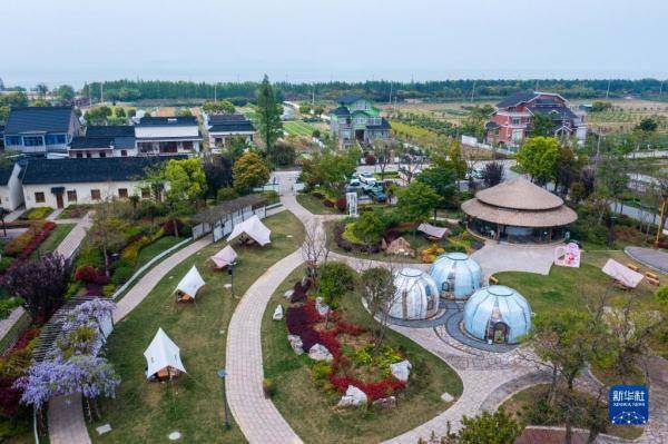 4月11日拍摄的伍浦村渔耕文化园的陶湾里乡村咖啡店以及乡村露营地(无人机照片)。
