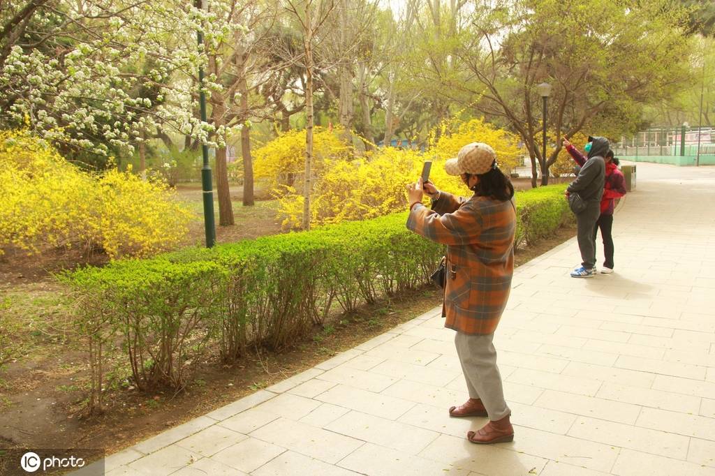 辽宁沈阳,春暖花开,南湖公园迎来最美花季。游人在公园赏花拍照、观光游览。