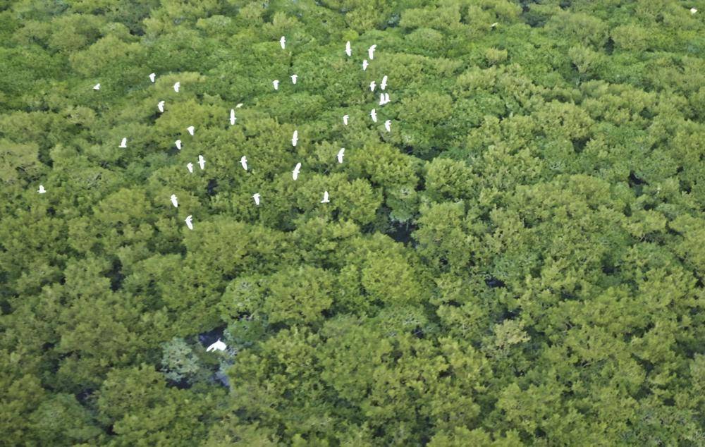 在金牛岛上,主要分布10种湛江本地的红树树种,大量鱼虾在林中繁殖,为鸟类提供源源不断的食物,时常吸引白鹭、青鹤、勺嘴鹬、黑嘴鸥、海鸭等珍稀鸟类在这里栖息。