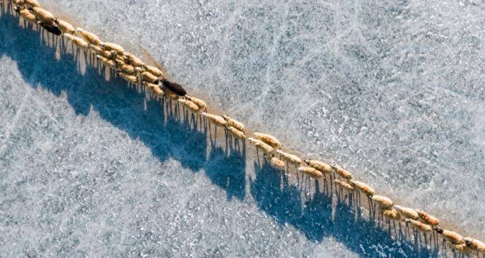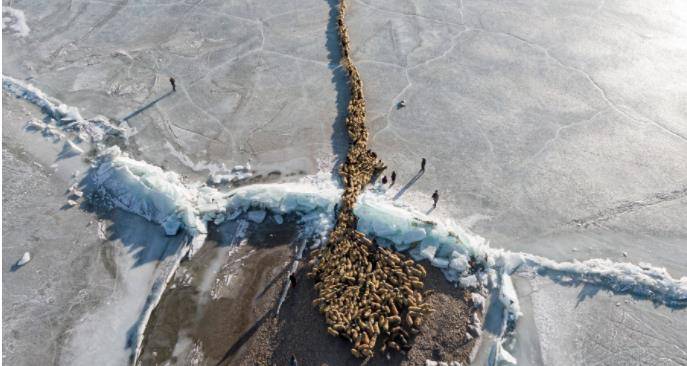 在普莫雍错的湖中心有一个牧草丰美的小岛,在冬季到来之时,湖面结成厚厚的冰,此时人们便会把羊群赶到岛上,等到春天快要到来的时候,人们再把羊群从冰面上赶回村子里。因为冰面会很滑,于是聪明的村民便把牛粪炉灰撒到冰面上,这样就可以防止羊群经过时在冰面上打滑。这样独特的放牧方法已经延续了上千年,成了推瓦村特别的一种“仪式活动”。