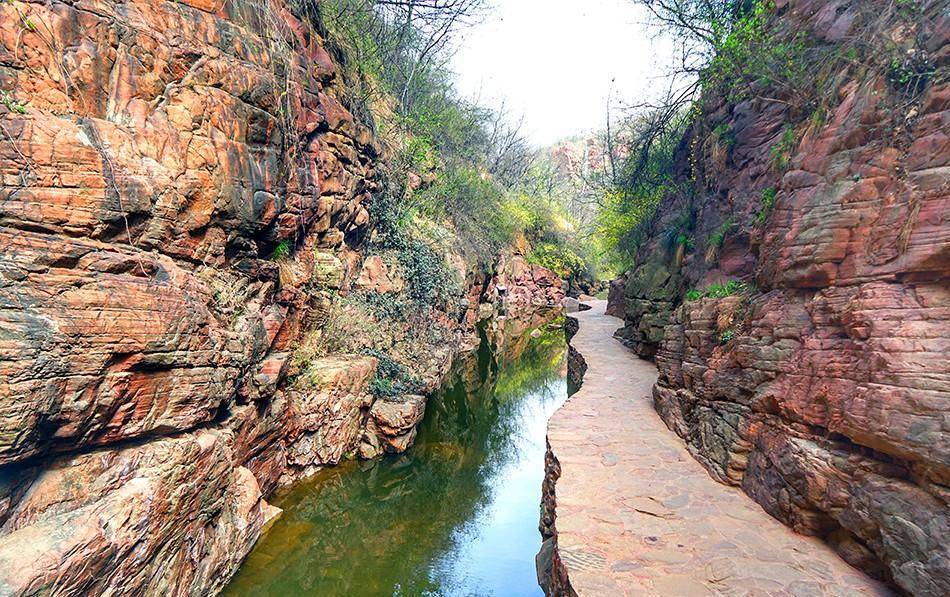 与国内其它峡谷景区不同的是,伏羲大峡谷两侧的壁崖呈赤红色,非常适合摄影观光。据介绍,这些红色岩石,是十几亿年前海洋运动形成的完美丹霞地貌地质奇观,因含有丰富的氧化物而呈现红色,在北方地区极为罕见。游客来到这里,既可欣赏丹霞风光,又能了解古代海洋遗存的地质谜团。
