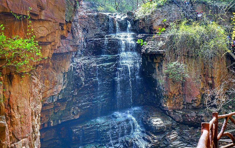 滚珠溅玉的瀑布从高处落下,在峡谷中汇聚形成了一条条小溪,水中的岩石经过溪流的冲刷浸润,变得圆润光滑,而水中游来游去的小鱼,也为这幅秀美的山水画卷增添了一丝灵动。行走于崖廊下、徜徉在山水间,到处呈现着生机勃勃,给人以一步一重天的不尽美感。
