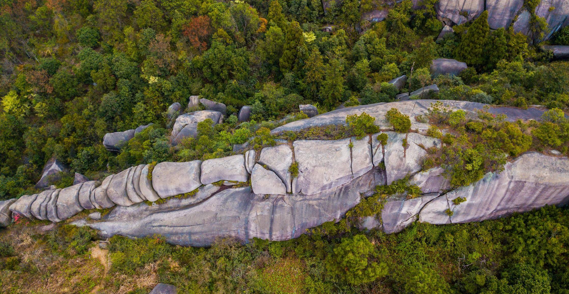 大罗山同温州市其它景区相比,具有紧靠温州、花岗岩体、靠江面海的特征。其中奇特的地质地貌,当属其最具代表性的景观之一。而位于景区中心的龙脊,则当之无愧是大罗山景点的精华之一。龙脊属于花岗岩地貌,典型的火山岩构造,是大罗山遭受亿万年漫长且复杂的地质作用的结果。它由23块形状相似的岩石组成,长约40米,宽约5米,最高约8米,因其形状犹如巨龙的脊骨,故称龙脊。其实一开始关于龙脊的所在,除了一些当地人外,并不为人所知,后来随着旅游者的增加,藏于深山之间的龙脊也随之频繁的出现在公众的视野,慕名前来的游客也越来越多。几乎每一个到达龙脊的游客,都被它惊人的相似度所震撼,同时也都被大自然的鬼斧神工所折服。