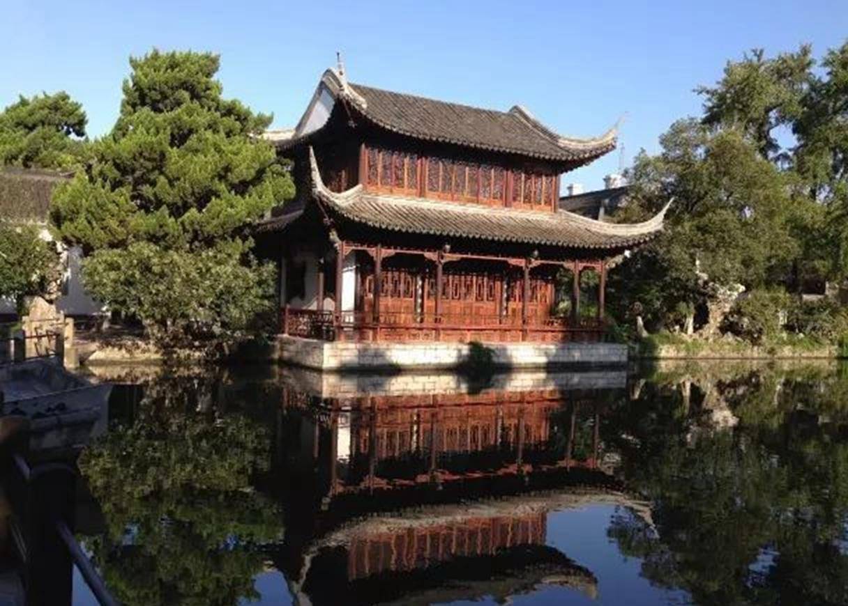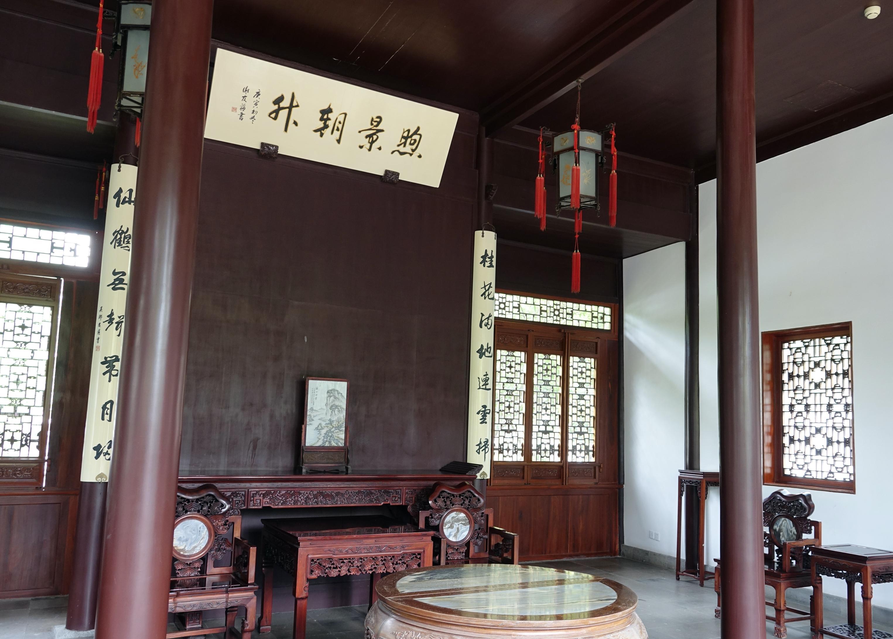 西侧则有一座前部凸入水中的二层小楼,名为“夕佳楼”。楼、阁相望,相得益彰。