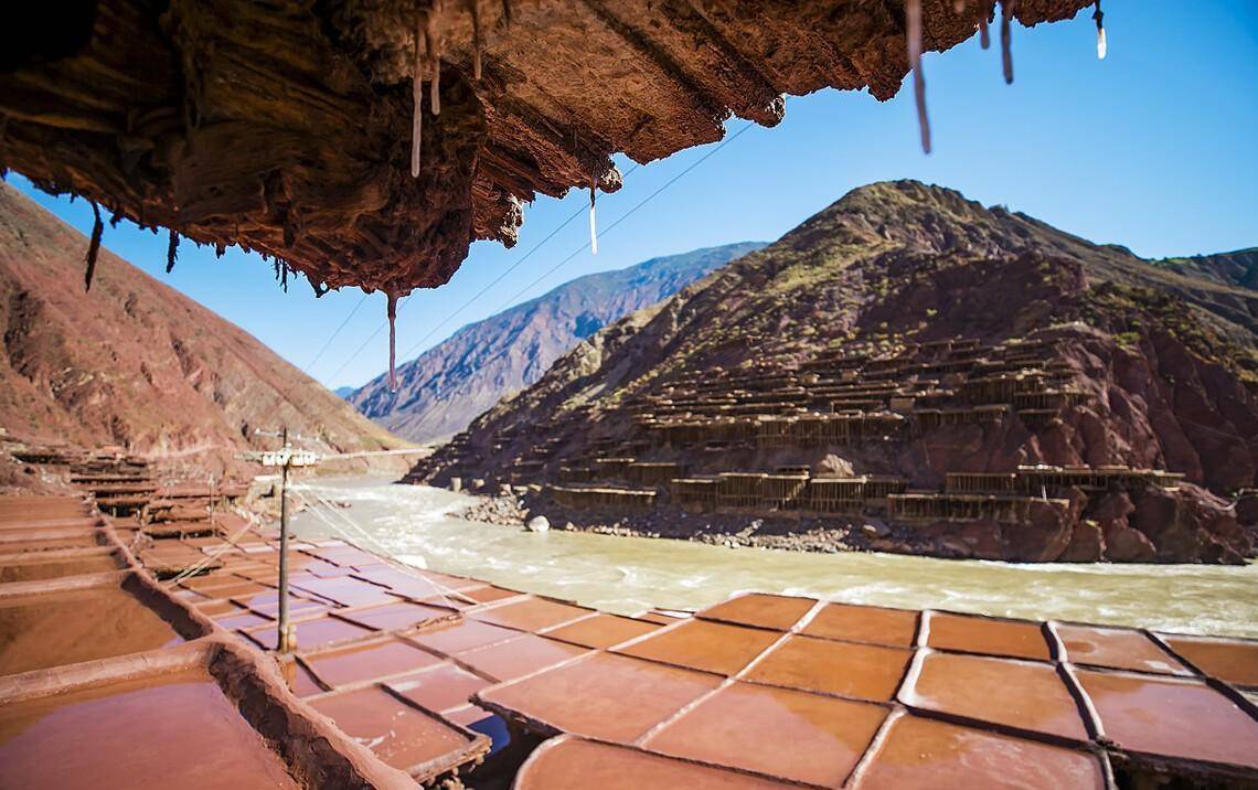 到达芒康县,在芒康县城就能遥望达美拥雪山。芒康的重点不是雪山是盐田。继续行驶90公里,当公路又一次与澜沧江相遇的时候,澜沧江岸边是芒康盐田。虽然处于西藏境内,但是芒康盐天世代居住的是纳西族人。旧时候男人外出在茶马古道上做马帮谋生,女人留在村里制盐,世代以来,一直都是女人在盐田制盐。