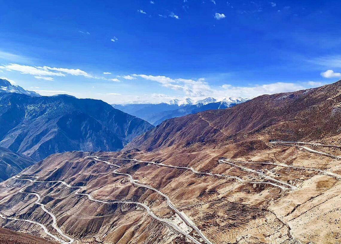 从左贡到芒康的路程需要翻越多座大山,海拔攀升至4000米,大部分路段是盘山公路,注意减速行驶,提前间检查车况。在东达山垭口、觉巴山、拉乌山,公路旁标注着海拔,也出现了很多“此生必驾318”之类的标语。每一个垭口都能眺望周边终年积雪的雪山。