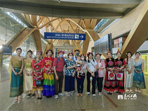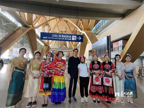 11点05分,泰国游客Min抵达昆明长水国际机场,同团的还有29位泰国游客。一出关,他们就收到昆明市旅行社行业协会、云南蒂朗国际旅行社有限公司送上的鲜花,还有一份由保温杯、遮阳伞、昆明旅游宣传手册组成的伴手礼。Min说:“这是我第一次来云南,第一次来中国。出发前,我查了很多资料。我想看看昆明的花,还期待去玉龙雪山看雪。”