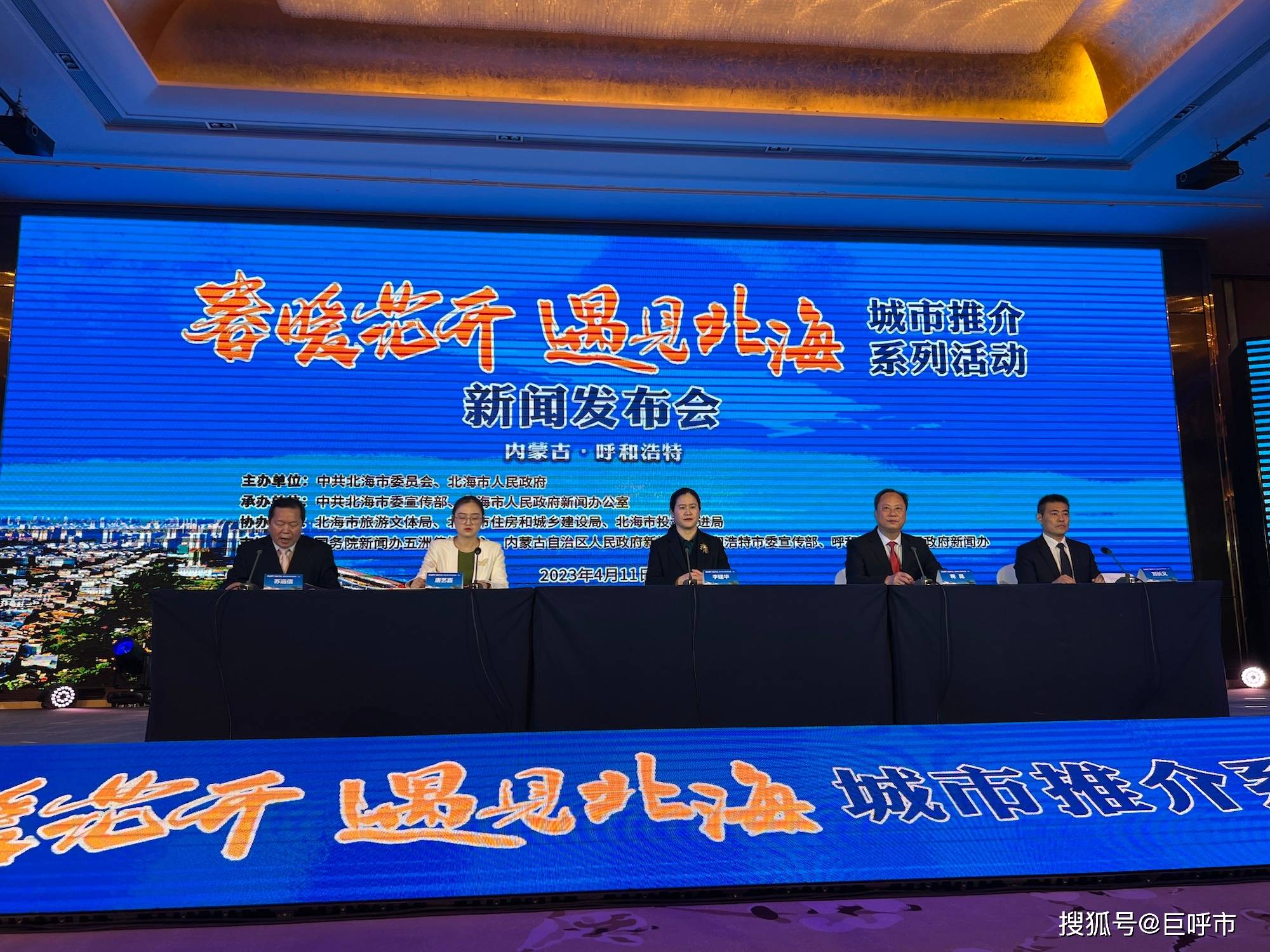 4月11日下午,“春暖花开·遇见北海”城市推介系列活动新闻发布会,“丝路古港·潮美北海”旅游文体主题推介会、“魅力北海·宜居城市”推介会、“选择广西 投资北海”投资合作推介会以及3场对接洽谈会在呼和浩特巨华嘉禧酒店举行。