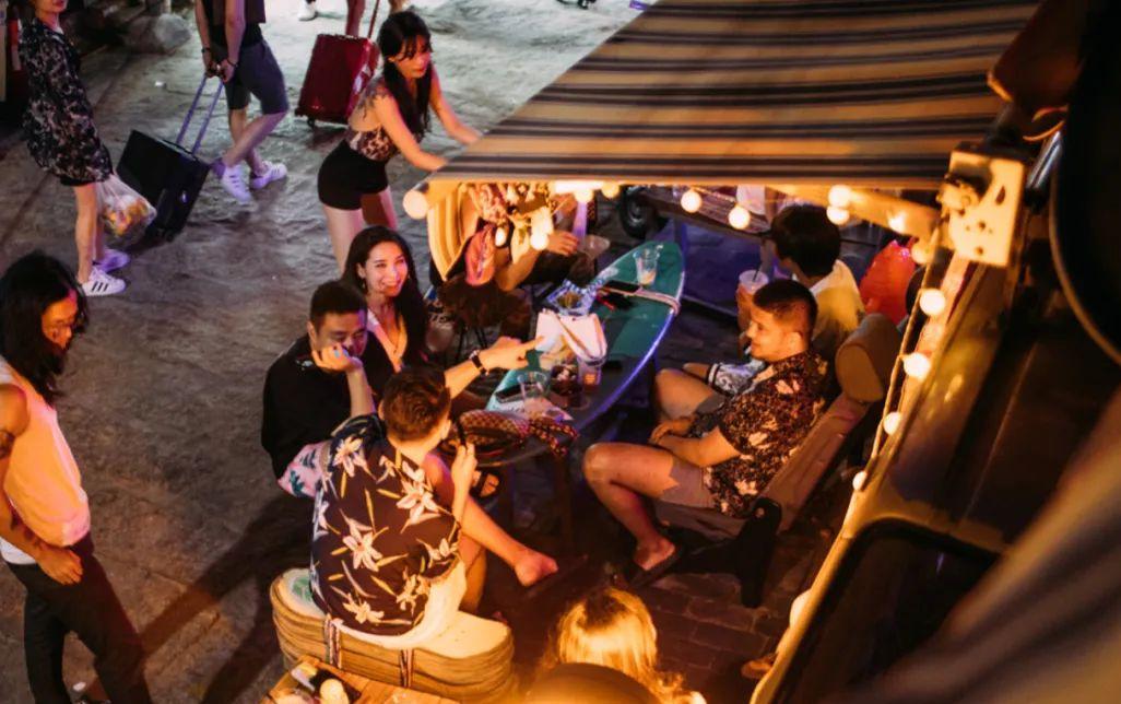同样是白天冲浪,晚上蹦迪,在后海村长住的新村民,有一套区别于游客的玩法。冲小浪的是游客,冲大浪的是村民;听流行音乐的是游客,听电子音乐的是村民;在沙滩蹦野迪的是游客,在俱乐部蹦迪的是村民。