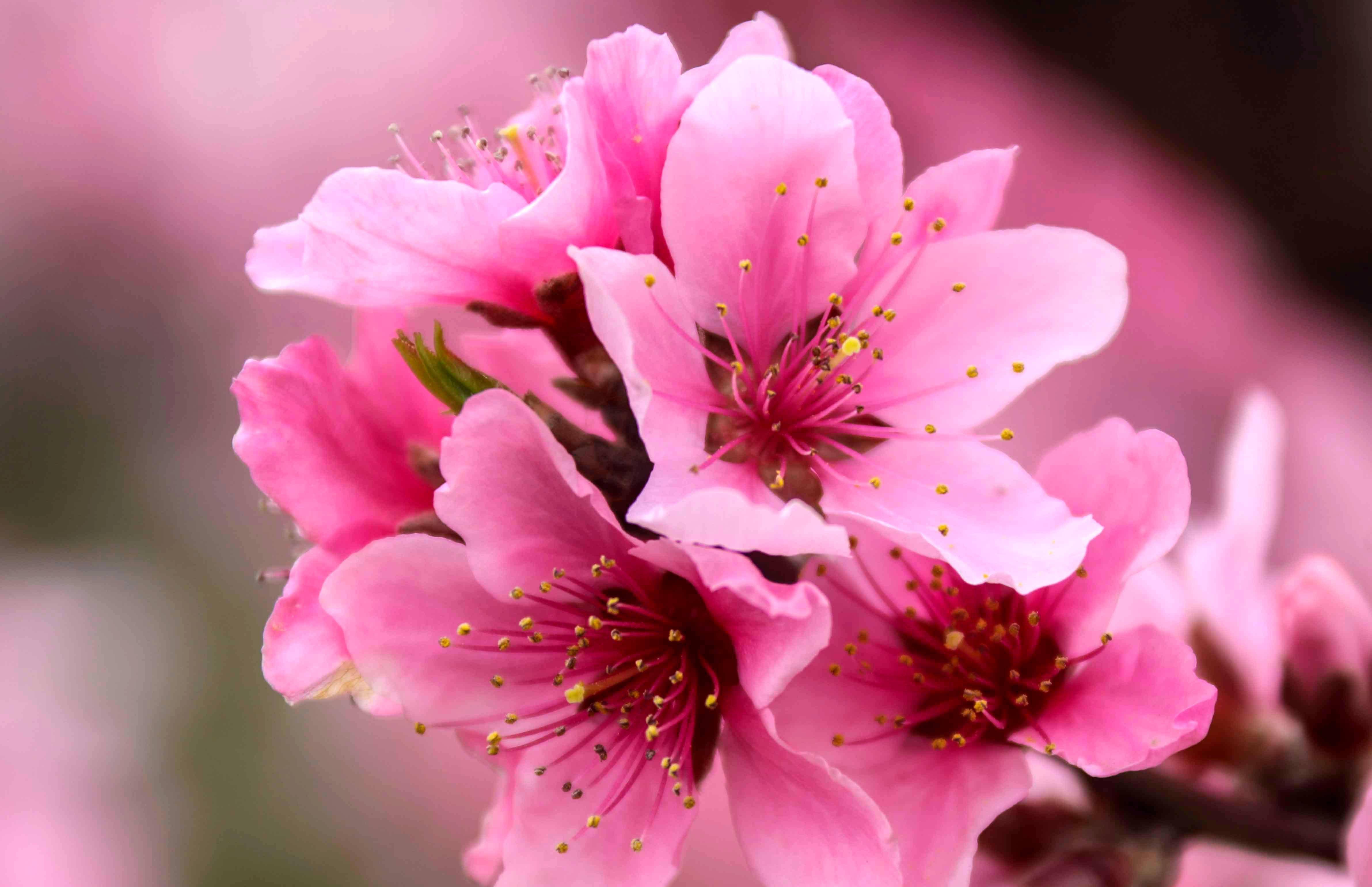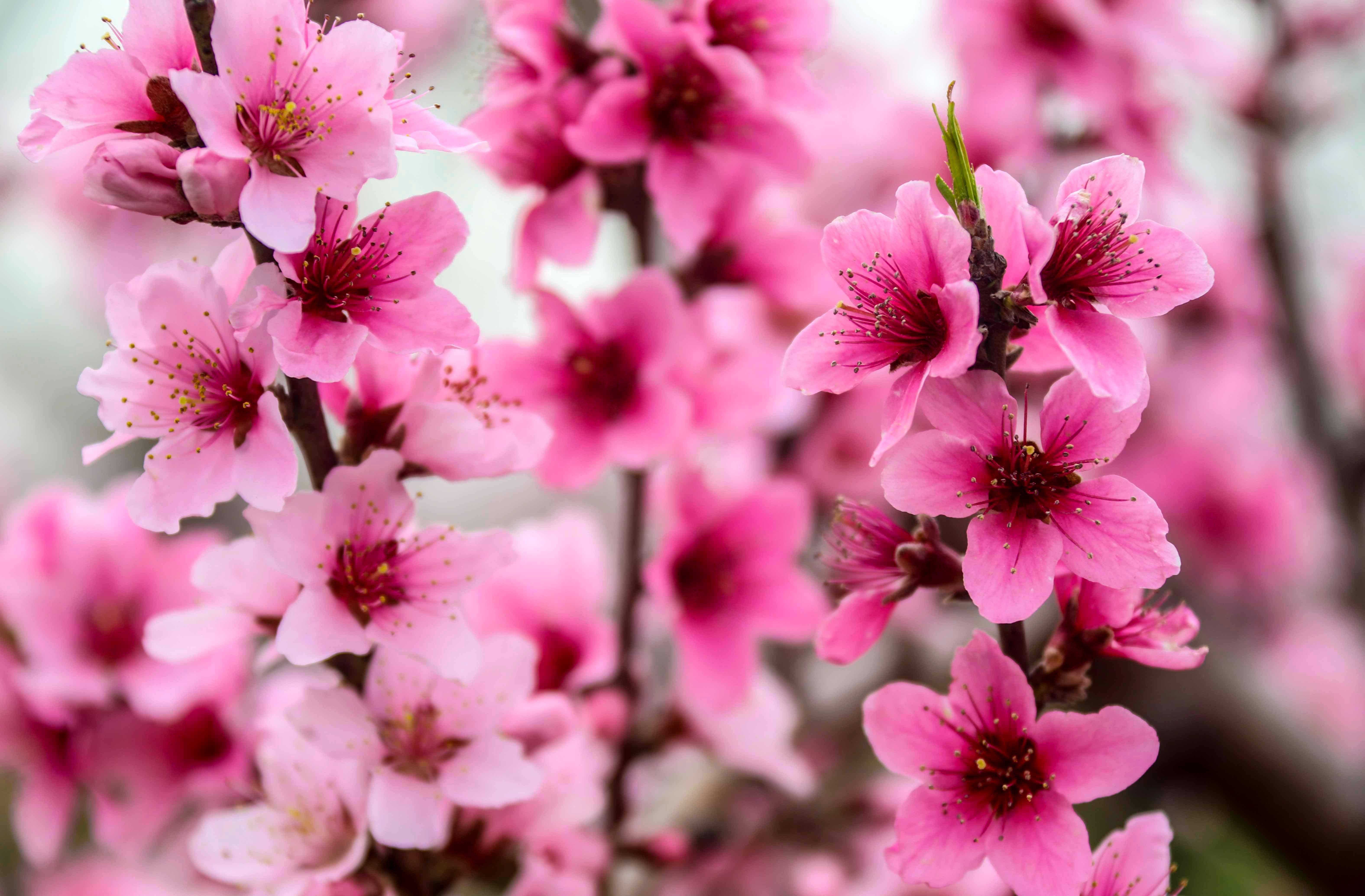 田园里的桃花开得正好,大朵大朵的桃花有的碰我额头,有的撞我手臂,花粉迷漫了相机的镜头。