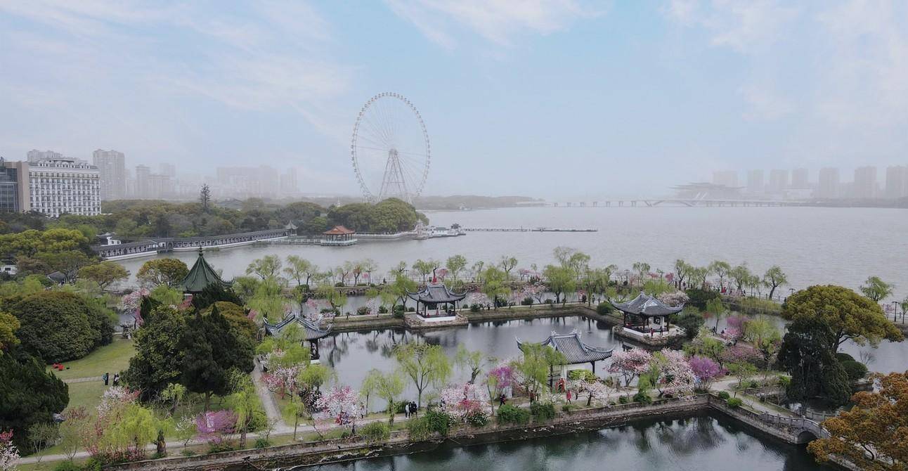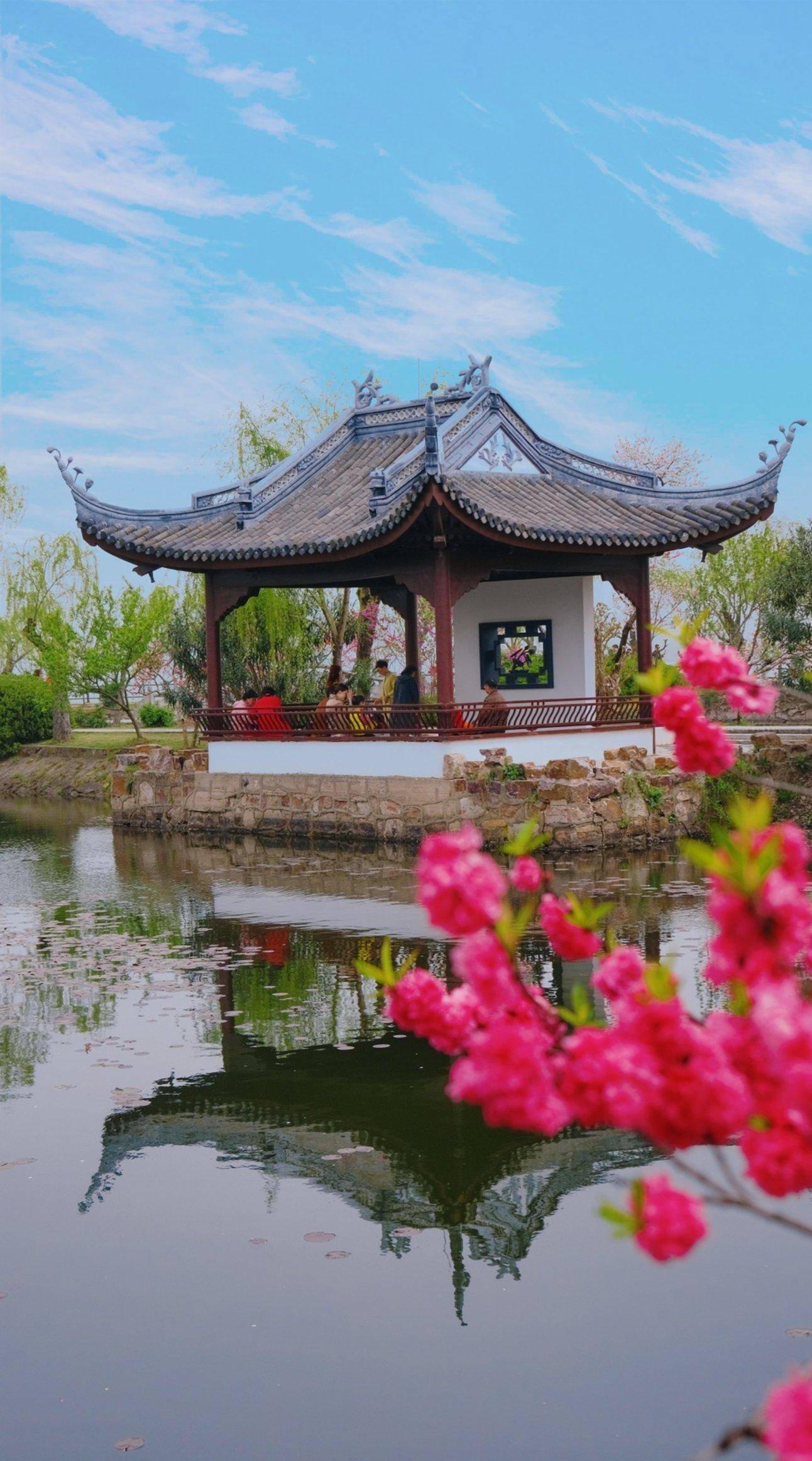 这个季节,可以看到成片的桃花盛开在蠡园,亭台楼阁,每一处都仿佛向我叙述着,这是一个 江南 水乡。