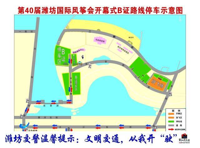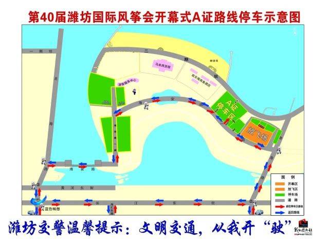 为方便大家参与风筝会相关活动,维护安全畅通的道路交通秩序,请凭本届风筝会开幕式门票或放飞票及车辆行驶证现场免费申领车辆通行证,仅限一车一证,参与此次风筝会开幕式各项活动的机动车辆一律凭公安交管部门核发的有效车辆通行证进入交通管制区域。