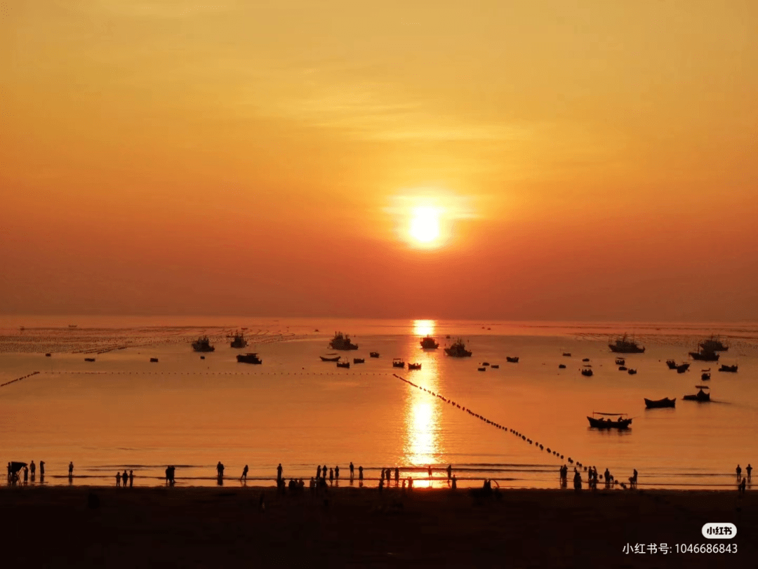 去海边怎能不去沙滩上走一走呢,细软的沙子,踩上去就像是掉落进棉花里。傍晚时分还能在海边看见夕阳,金黄的落日把海面全部渲染成闪金,氛围感绝了!