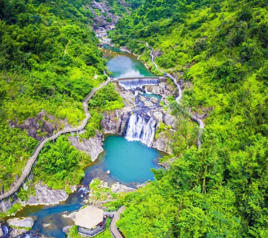 沿着三折瀑一路缓行,感受天地间自然山水的美妙。看着绿莹莹的溪水蜿蜒而下,三重瀑布飞溅,卸去一身烦恼。