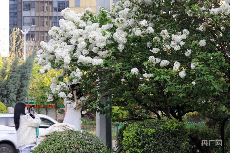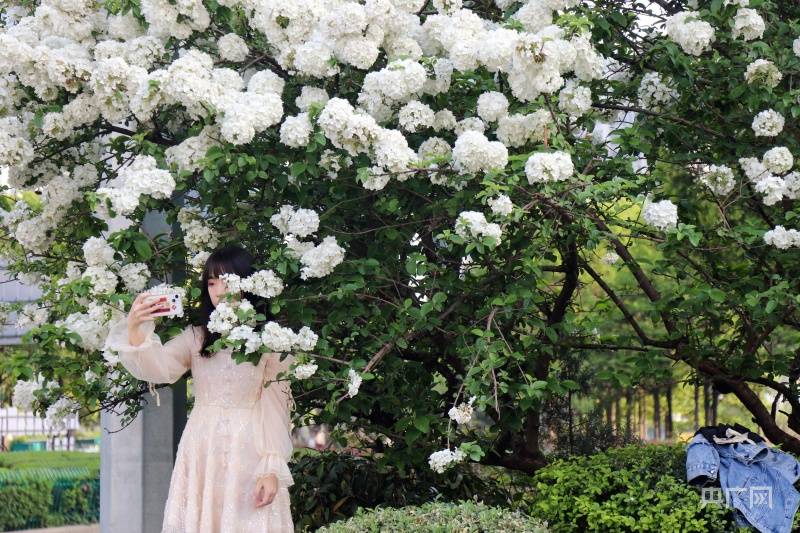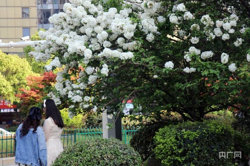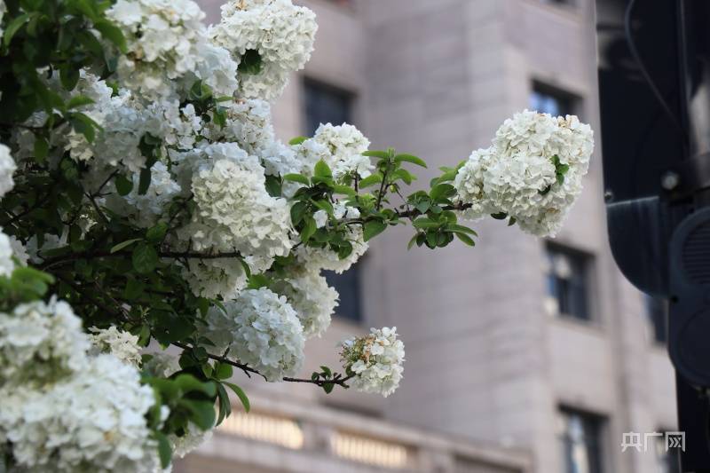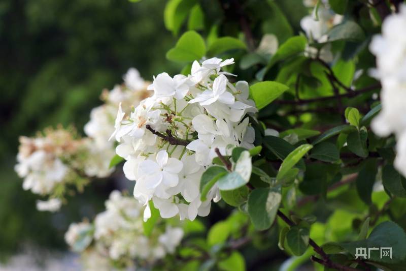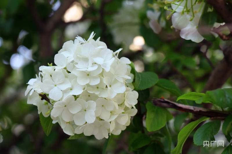 洁白如雪的绣球花(央广网见习记者刘培俊摄)
