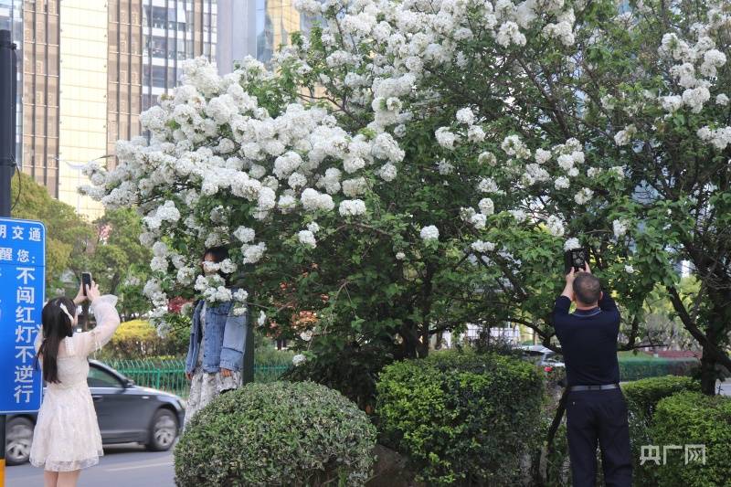 央广网南昌4月12日消息(见习记者刘培俊)近日,南昌市街头的绣球花正在绽放,成为街头靓丽风景线。不少市民前来“打卡”拍照,感受绣球花的浪漫。