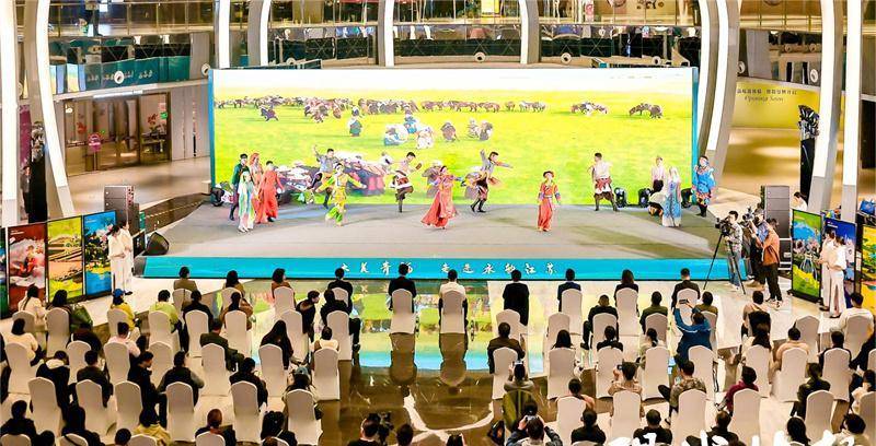 一段歌声嘹亮的《在那遥远的地方》,拉开了活动的序幕。青海省文化旅游的各级推荐官们以视频讲解、图文并茂、双向互动等形式,将大美青海的各类文化旅游特色资源娓娓道来。“梦幻海北”“夏都西宁”“天下黄河贵德清”“天空之镜”茶卡盐湖、“彩虹的故乡”互助土族故土园、新华联童梦乐园等一张张文化旅游名片,吸引着与会嘉宾频频举起手机拍照。微集市上的热贡艺术唐卡、青绣手工制品、茶卡盐湖日化用品、盐雕、沙棘、黑枸杞等文化旅游产品吸引南京市民纷纷驻足。“大美青海 生态旅游”摄影展、以野牦牛和藏羚羊组成的“我在青海等你来”网红打卡区也是现场的吸睛亮点。还有《安召索罗罗》《美丽中国从青海出发》等具有青海特色的歌舞表演,展现着当地的民俗风情。