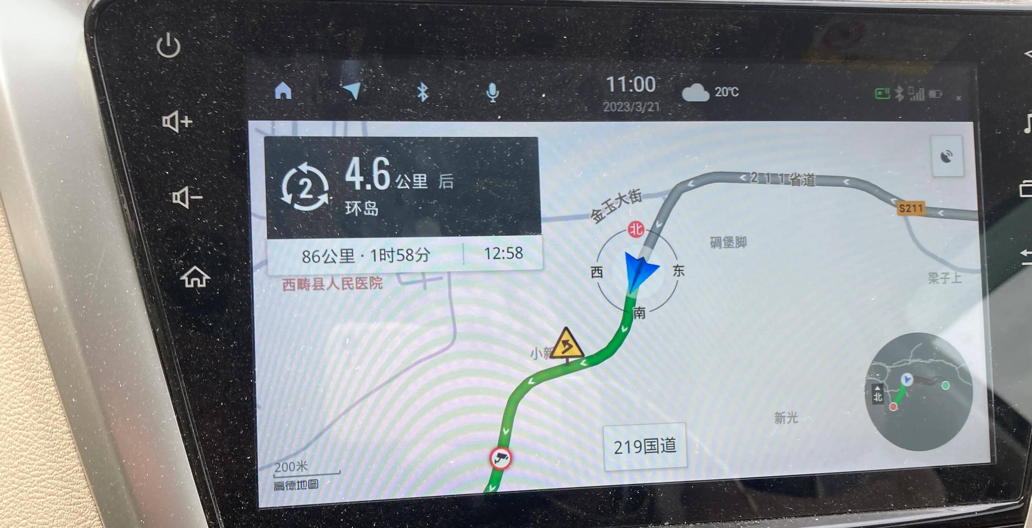 导航路程是220公里,导航时间是5:36(表示是5小时36分钟,后续表示同);我实际行走里程也是220公里,我在路上的时间是6:31;除去路上景点停车拍照及休息,实际开车大约5:30;