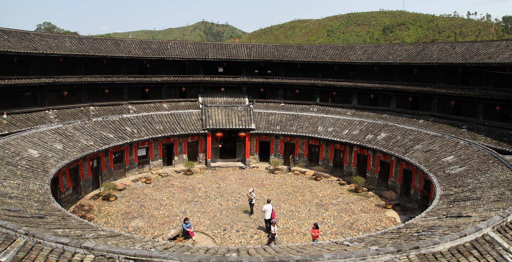 除此以外,这里还有楼套楼的房屋建筑模式,将整个土楼分为不同的单元,其中客厅、厨房和卧室一环连着一环,被称为“复式民居楼”,在土楼的中间还有一座十分宏伟的天井,占地面积大约有300平方米,并且天井的建立还是用不同大小的鹅卵石铺就而成的,周围又撒上一些古钱币模样的石头,意在表明希望这里的人生活富足。
