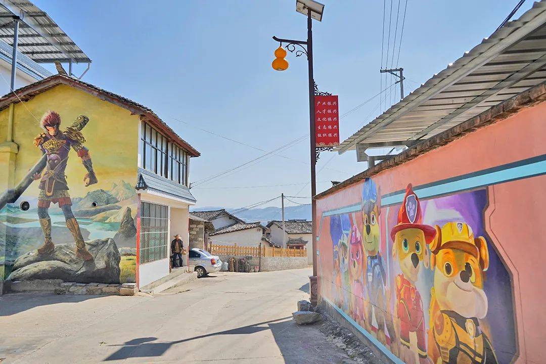 在最淳朴的民风和最原始的自然风光里,一组组漫画形象各不相同,不仅有宫崎骏的动漫世界,还有拥有神奇口袋的机器猫哆啦A梦、活泼开朗的海绵宝宝、幽默风趣的汤姆和杰瑞、桀骜不驯的魔童哪吒、高大威武的齐天大圣、回忆满满的童年小卖铺、充满传统元素的舞狮,甚至连电线杆都被绘上精巧的图案。从国外到国内,从传统到现代,这些漫画让村庄充满艺术气息,丰富了村民的精神世界,也吸引了络绎不绝的游客前来与自然和人文撞个满怀。