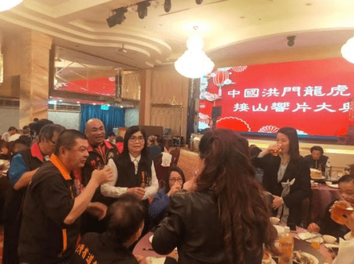 众多宝山尊友、名流出席大典,龙虎山名誉山主杨文贤大哥、龙虎山荣誉山主郭家瑜大哥、龙虎山荣誉山主陈盈智龙哥、龙虎山荣誉副山主吕玩性大哥、香长圣文山山主李松林大哥、盟证岱鲁山山主谢富德大哥、帮办大享山山主王春元大哥、帮办华宝山山主苏经孟大哥、名誉顾问高雄市道教会洪荣豊理事长、名誉顾问圣文山弘义总会杨孟哲大哥、荣誉顾问台湾省道教会林明华副理事长、荣誉顾问三立民视知名演员陈若萍小姐、顾问陈启清大哥、顾问大陆山金凤经忆贤四大姐、顾问赵建伟(吉美)小姐、顾问朱登英(镕燕)小姐率诸多昆仲莅临观礼。英雄相聚龙虎山,名声远播振山扬,异姓兄弟今结义,共结洪门义气长。