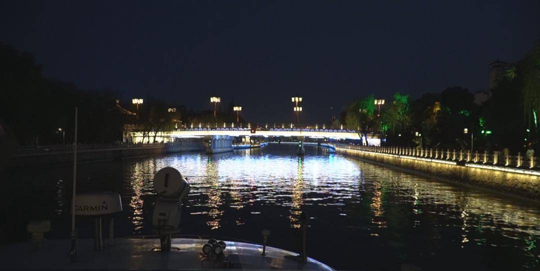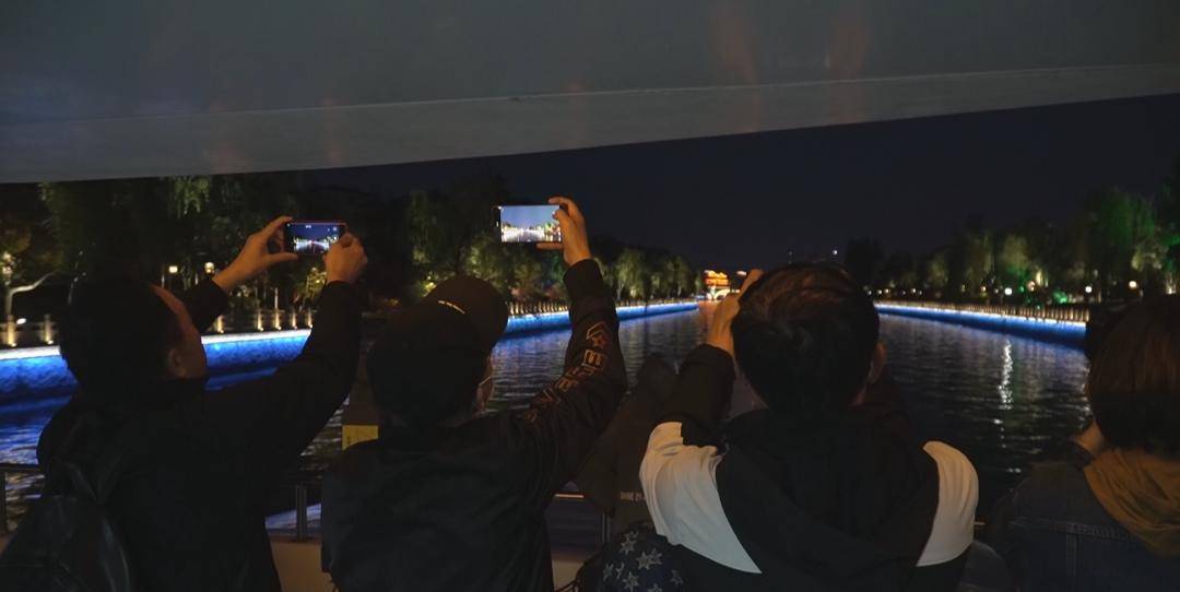 舟行碧波上,人在画中游。两岸移步换景的运河夜景,也让游客们放不下举着的手机。