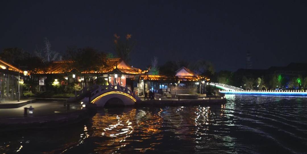 夜晚,泛舟古运河上,欣赏着两岸流光溢彩的扬州夜景,耳边传来宛转悠扬的曲调,游客们沉浸式地感受着古城扬州深厚的历史文化底蕴。