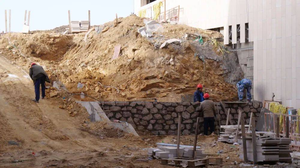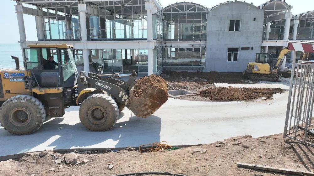 坐落在马栏湾的省港口集团文旅项目是市级重点项目,项目施工现场两百余名工人正分工明确、井然有序的进行外墙、内场装修、土地平整、绿化打造等工作。
