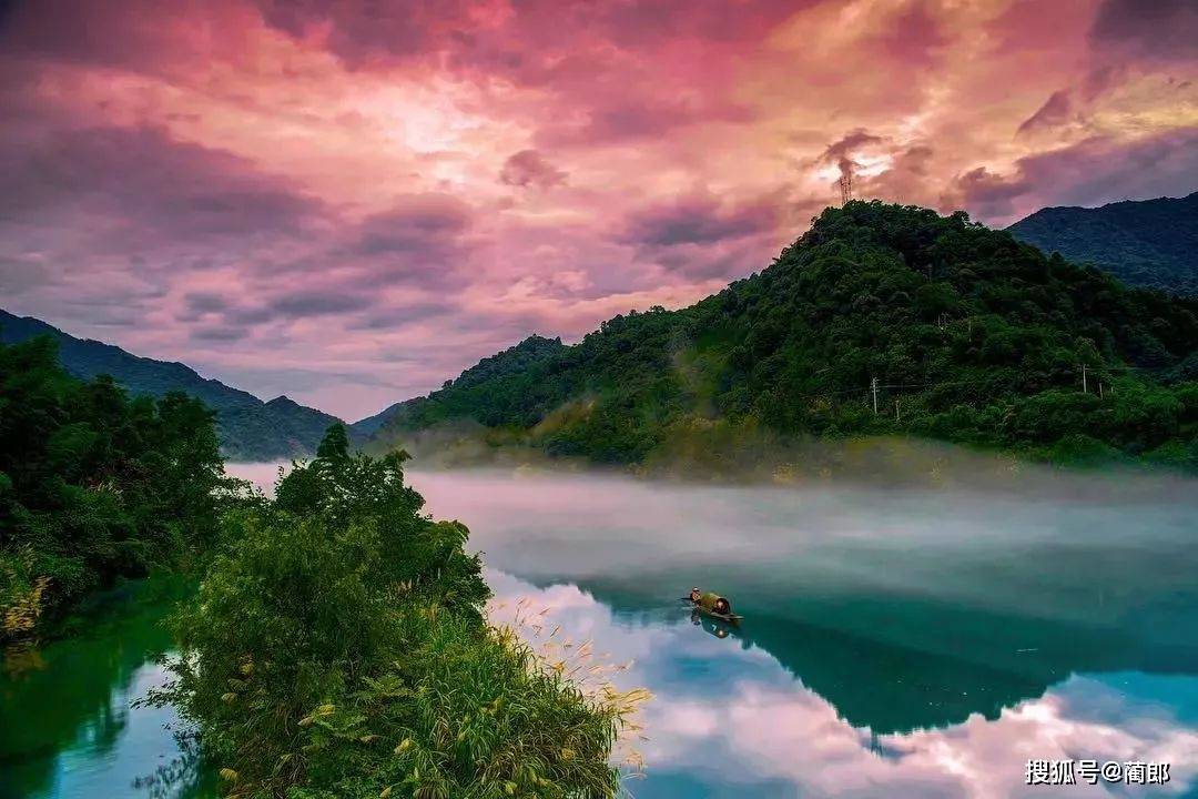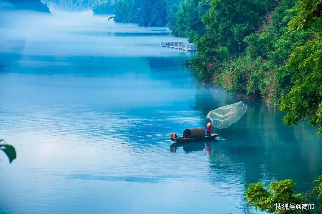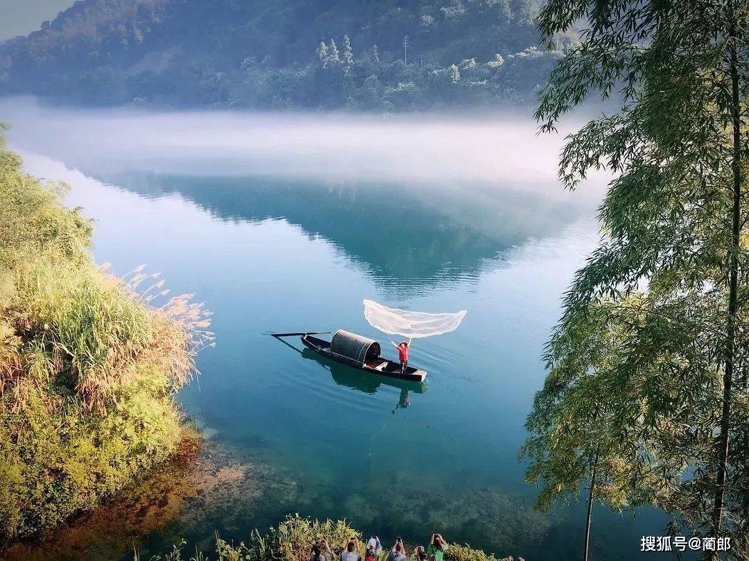 雾气升腾的江面迷蒙得恍如仙境,渔人撸桨划舟,到江中挥手将渔网往外撒出,一派祥和的渔牧之景,这里就是郴州小东江。