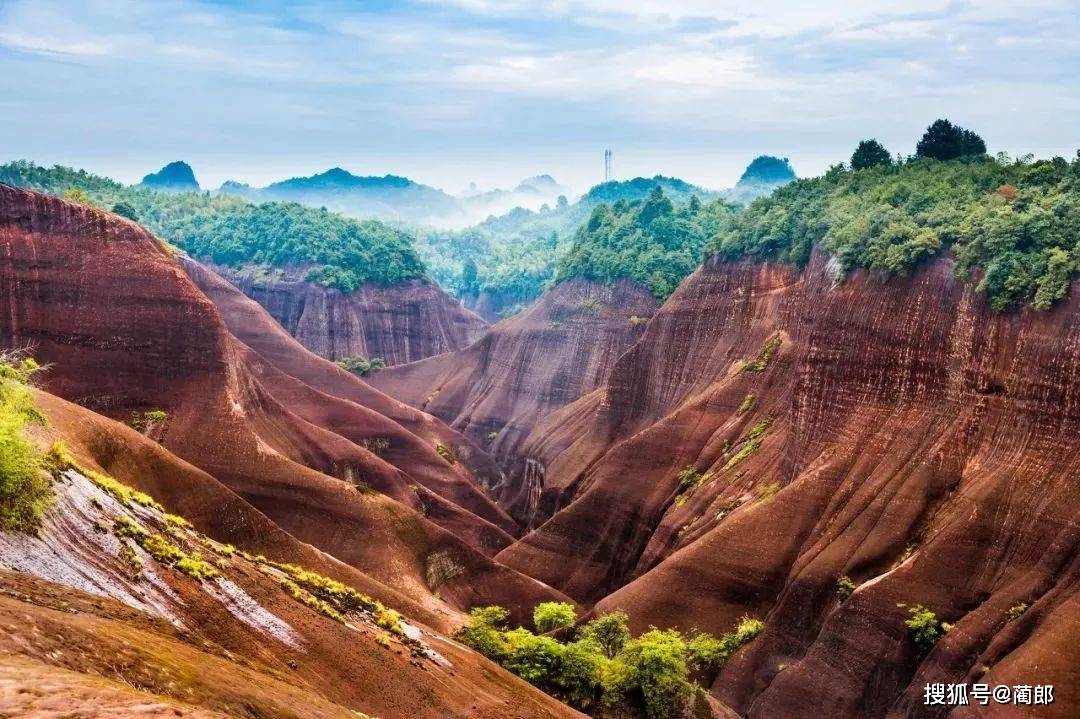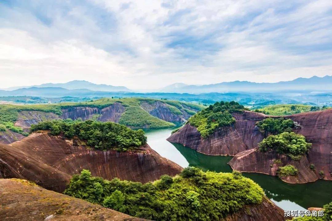 不同于别处,高椅岭丹霞地貌周边有漂亮的水洼点缀,从高空俯瞰,每座山就像是一座岛屿,镶嵌在宝石般碧蓝的水中。
