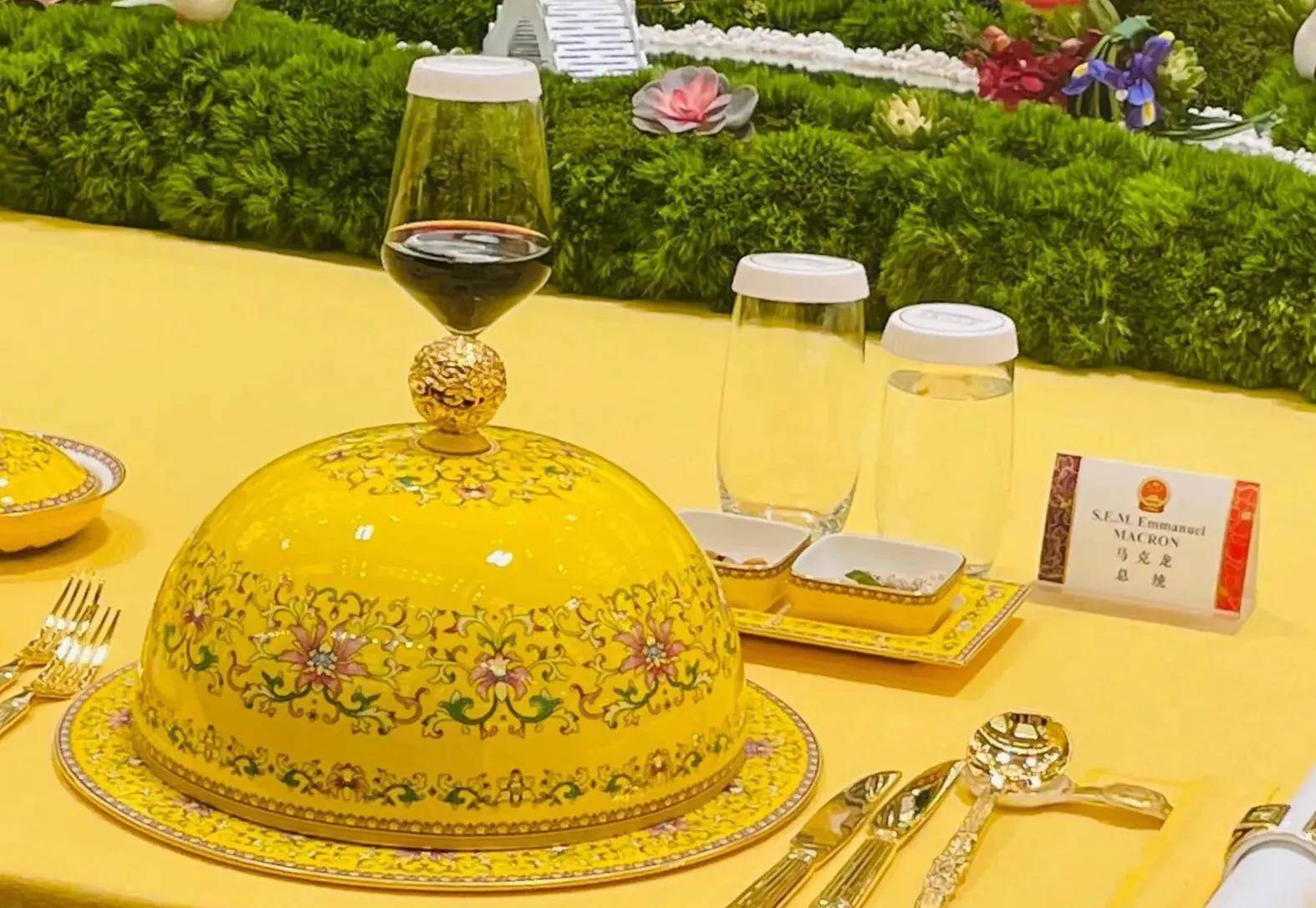 对于这次马克龙来华的国宴没有对外透露,但是从流露出来的国宴餐具可以看出,是空前地高规格,还贴心地准备了马克龙爱喝的红酒。