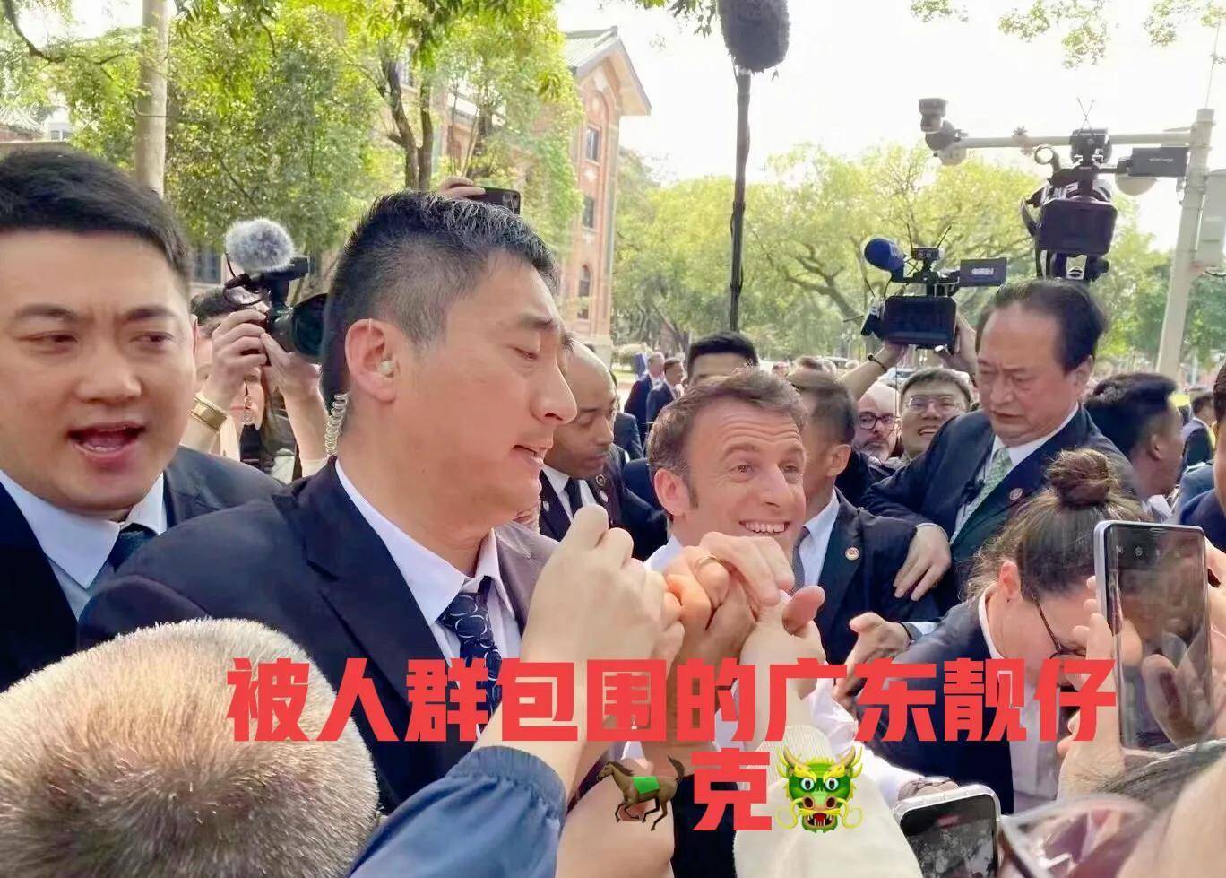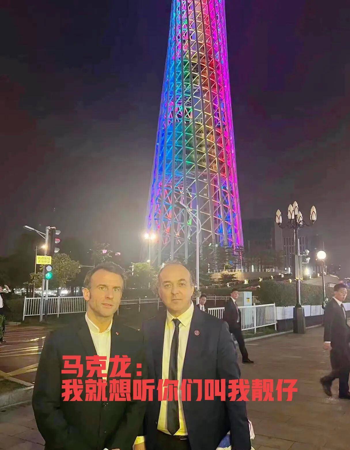 再来看看马克龙先生珠江夜游前在广州塔下的合照,像不像你多年没回中国的远方大表哥?广州中山大学的学生在一周前就知道有大人物要来,学校进行着大规模的翻修,甚至把打一批蹲坑换成了马桶。