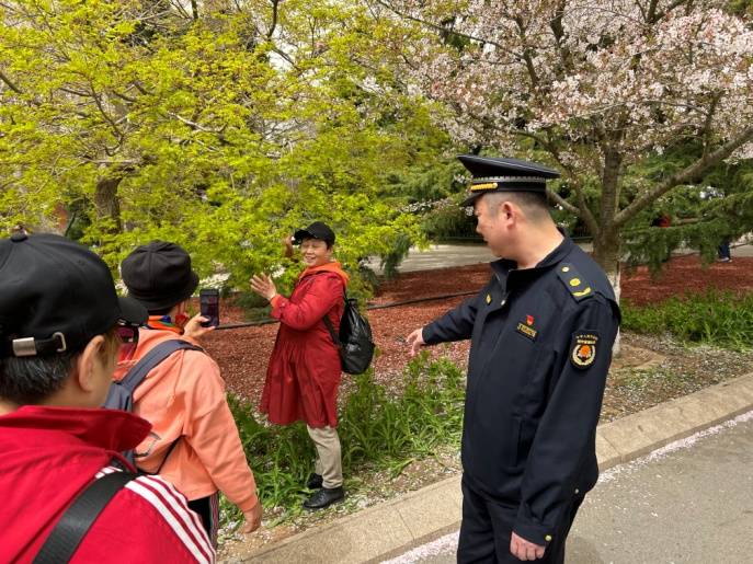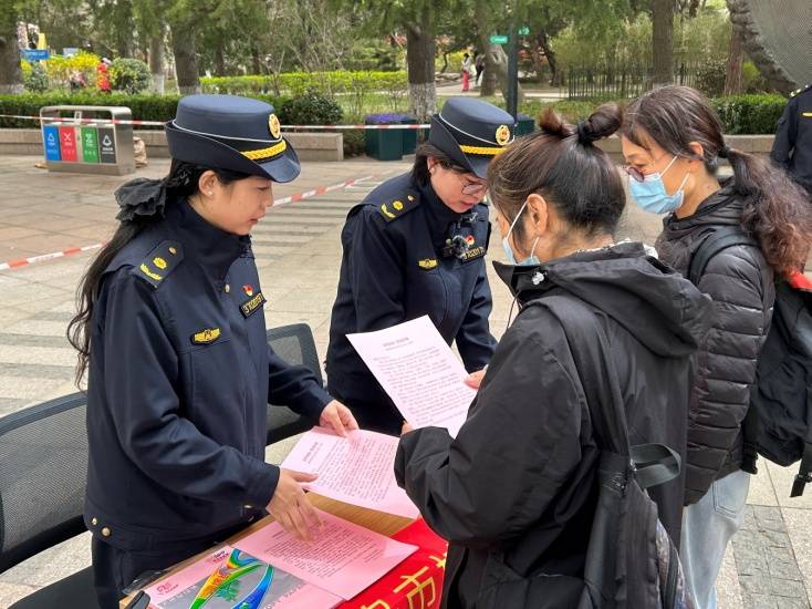 行动期间,城市管理综合执法部门联合市公安局机动支队,会同园林绿化养护管理单位,对城市公园、林荫绿道、滨海景区等绿化保护情况开展专项检查,在游园、旅游、展会等活动和节假日期间,开展联合巡查和定岗值守,通过数字化采集等途径,及时发现制止践踏绿地、攀折花木、损毁树木等占绿毁绿行为。同时,大力开展普法宣传和违法警示教育,利用媒体网络、以案释法、志愿服务等方式扩大宣传覆盖面,宣传文明游园、古树名木保护、爱绿护绿等相关法律法规,引导市民游客文明踏青游园,自觉守绿护绿,与广大市民携手一道,共同守护岛城的花海美景。