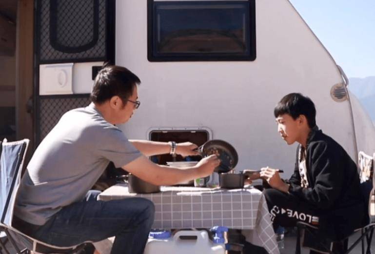 纵观整个旅途里,父子两人的衣食住行都要自己解决。徐云峰做饭、徐子程刷碗,两人共同完成每一项任务。