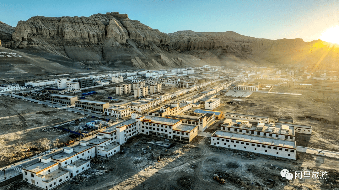 札达县城依土林和象泉河而建,背山面水。清晨或黄昏,霞光照在县城之上,宫殿式的土林身姿雄伟高大,景色十分壮丽。