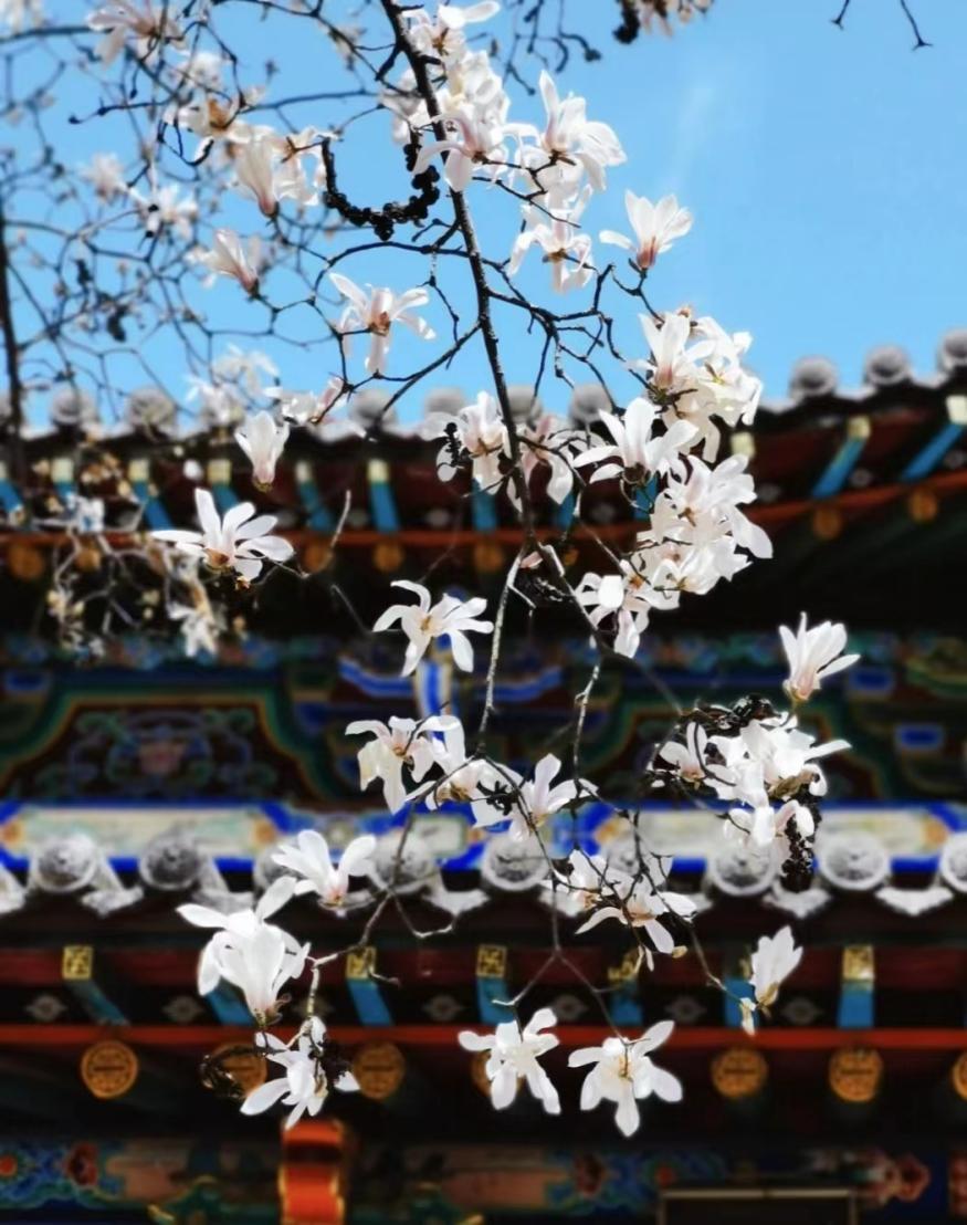 看过《步步惊心》的朋友,一定对玉兰花情有独钟。千枝万蕊的玉兰花朵朵向上,似在雪中浸润,纯粹高雅、清香醉人,在古建筑的映衬下,彰显高贵气质,不愧是万千人心中的白月光。