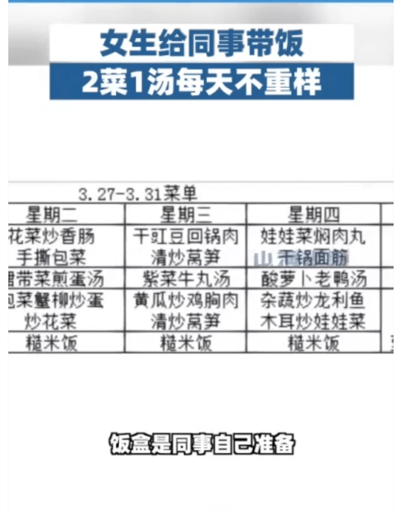 原标题:女生每天给同事做饭2菜1汤不重样,每顿饭仅象征性的收15元