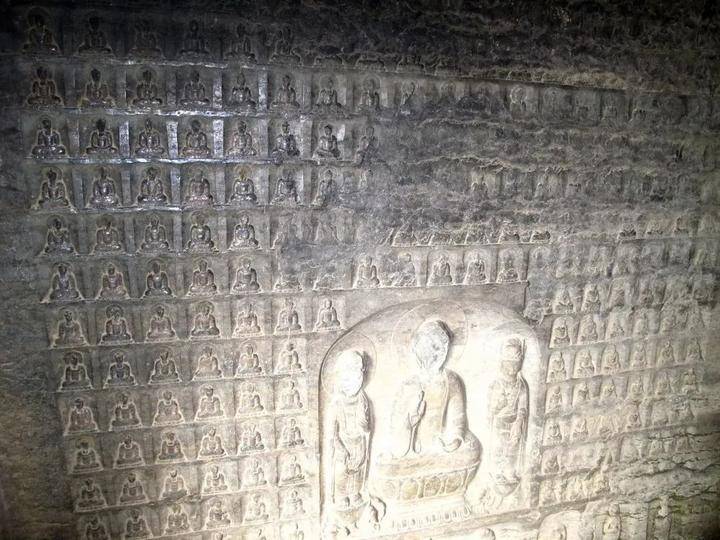 二仙庙西侧的阳洛山中有真谷寺,这里自然环境优美,北魏时在此兴建寺院,开窟造像,称“太平寺”,之后一千多年的时间,这里不断续造窟龛,直到民国时期才日渐圮废。其寺名也几经演变,先后易名为“开化寺”,“悬谷寺”,“真谷寺”,2013年国务院公布其为全国重点文物保护单位。现存三窟八龛,一座线刻唐塔,一处摩崖刻经,宋、金游人题记多处。漫步其中,仿佛还能听到逃远的钟声在山间回荡……