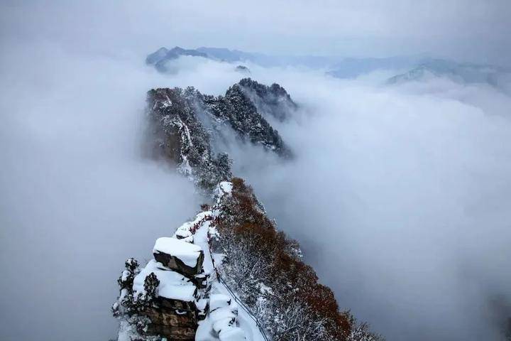在神农山景区的龙脊长城之上生长着16000多株白皮松,他们形态各异宛若大山里的精灵,在悬崖绝壁上展现着万种风情。风起时,山风拂过松枝,飒飒作响,松涛阵阵,时而如壮美的乐曲,时而泠泠如梵音入耳。行走在龙脊之上,静坐于白松树下,皆可细细品味大自然为您演奏的天籁之音。