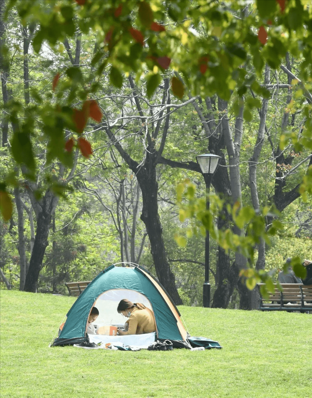 “23个公园都可以搭帐篷,这必须挨个去打卡。”家住青山区的刘女士每天都会带孙女到和平公园玩,得知和平公园、沙湖公园、解放公园等23个公园都可以搭帐篷了,她准备每周都约朋友去打卡遛娃。