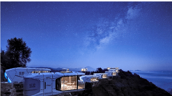 据了解,微宿文旅推出的“太空舱”可移动装备建筑被称为文旅业“新物种”,具有安装时间短、无现场装修、生态友好及运营管理方便等特点,非常契合山地旅游环境。