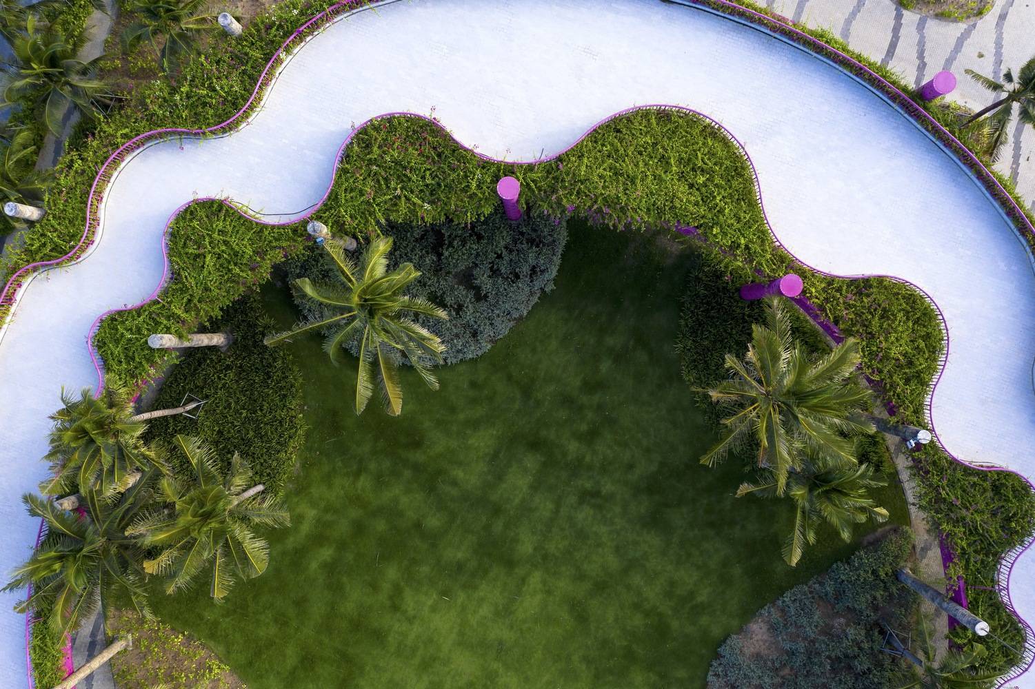 来自一片原始的荒地,广场的出现连结了人与自然。游客可以在广阔的沙地上漫步,触摸绿色的椰子树叶,捕捉风景如画的海湾之美,近距离观看,甚至触摸“星空”。